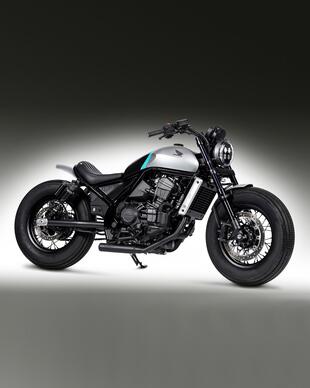 Ispirata dal design “minimale” della CMX1100 Rebel, questa interpretazione esalta la sua anima custom e, allo stesso tempo, si muove sempre più verso lo stile bobber. Il forcellone e le sospensioni sono di serie, ma la focella è stata sfilata di 25 mm, mentre i cerchi con raggi neri costruiti su misura montano larghi pneumatici Bridgestone.