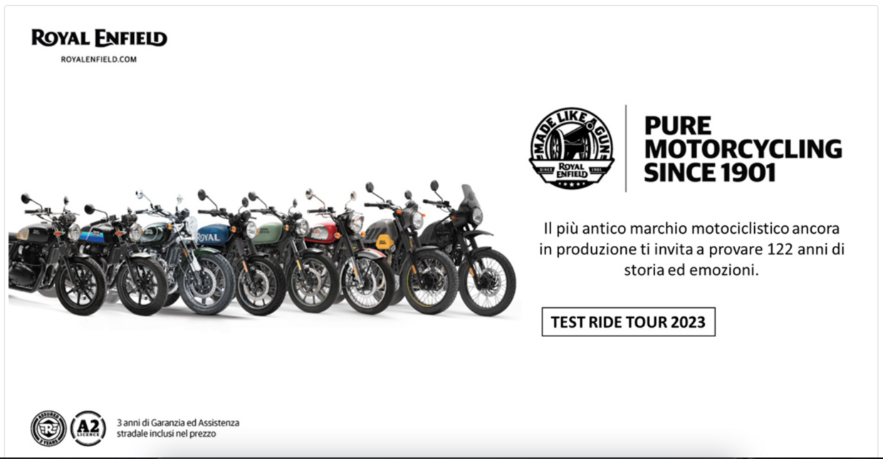 Con l’arrivo della primavera, le Case motociclistiche hanno aperto le porte di concessionarie e rivenditori per consentire a tutti gli interessati di conoscere e testare su strada i modelli presenti in gamma. Tra queste non poteva certo mancare Royal Enfield, che con il suo “Ride Tour 2023” concederà a tutti la possibilità di provare l’intera gamma moto, comprese la nuova Super Meteor 650, la HNTR 350 e le Interceptor e Continental GT 650. Oltre alle novità 2023 saranno a disposizione del pubblico anche i modelli Royal Enfield più iconici e i best seller della gamma, come la Meteor 350, la gamma Scram e Himalayan 411 e la Classic 350.