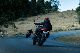 La chiave di tutto è la posizione di guida. Il manubrio in alluminio è stato ribassato e riposizionato, così il peso del pilota si sposta sull'avantreno, con il busto più proteso rispetto alla versione standard. Non è una posizione da pista, ovviamente, ma basta per cambiare il feeling: l'anteriore si sente di più e i cambi di direzione, sulla carta almeno, risulteranno più rapidi. Sotto non cambia nulla: il monocilindrico Sherpa da 452 cm³ raffreddato a liquido eroga sempre 40 CV e 40 Nm.