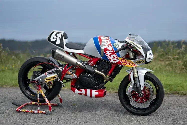 C’è la firma di Pepo Rosell, nome noto agli appassionati per i suoi trascorsi con Radical Ducati, dietro questa sorprendente reinterpretazione della Royal Enfield Guerrilla 450. Il progetto, battezzato GRR, nasce in Spagna nei laboratori XTR Pepo e rappresenta una radicale trasformazione in chiave corsaiola, con evidenti richiami alle monocilindriche da pista degli anni 90. Il telaio in acciaio della Guerrilla è stato profondamente modificato: nuova la parte posteriore con sottotelaio e sella monoposto su misura, nuovo anche il forcellone in alluminio e gli attacchi delle carene. Il motore da 450 cm³, monocilindrico, resta nella configurazione originale ma viene abbinato a un airbox rivisitato per migliorarne la respirazione. L’obiettivo dichiarato non è stupire con la potenza, ma alleggerire e affinare per avvicinarsi allo spirito delle competizioni.