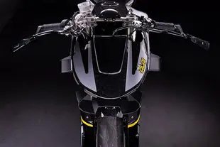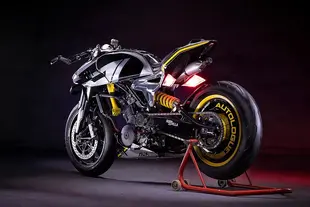 I primi sketch sono stati perfezionati digitalmente usando "Youralai", la piattaforma di design AI sviluppata internamente dall'azienda negli ultimi due anni. Nonostante i cambiamenti radicali, alcuni elementi della moto originale sono stati mantenuti: il serbatoio è stato usato come modello per crearne uno custom leggermente più largo, mentre gli intarsi nelle nuove piastre in alluminio del telaietto posteriore riprendono le forme dei pannelli laterali originali. Tutta la carrozzeria è stata realizzata in fibra di carbonio forgiata, con la sua texture particolare che contrasta con le grafiche argento e giallo.