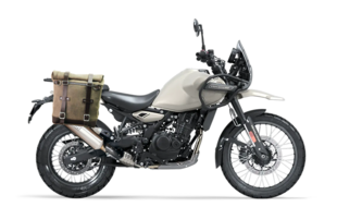 Restando in tema, chi desidera utilizzare la Himalayan come mezzo per viaggiare può scegliere fra borse laterali in tessuto semirigide di diverse misure: 10-14 L (266 euro), 22-30L (292 euro), quest’ultime disponibili anche in cuoio (327 euro). Per montarle sono necessari i telaietti (171 euro cad.)