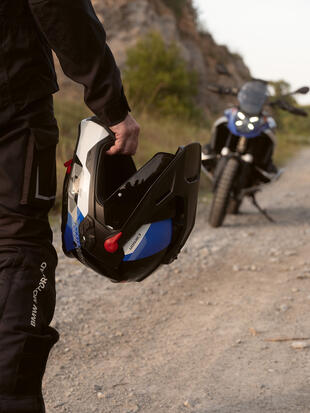 Il casco è predisposto per l’aggiunta del sistema di comunicazione BMW ConnectedRide COM P1 GS, utilizzabile tramite il multi controller senza staccare le mani dal manubrio. La batteria e l’unità principale sono posizionate sotto una copertura posteriore e il pannello di controllo è integrato nel design del casco, sul lato sinistro. Il BMW ConnectedRide COM P1 GS utilizza Mesh 2.0 per Open e Group Mesh e, grazie alla soppressione ottimizzata del rumore e agli altoparlanti HD di seconda generazione, garantisce una qualità audio e vocale superiore.