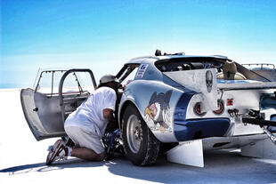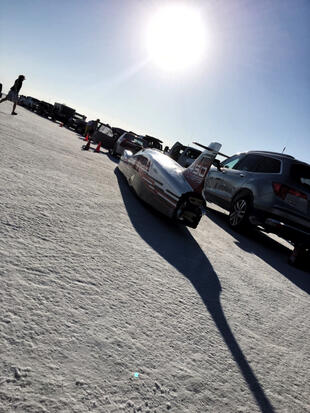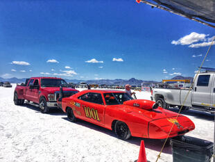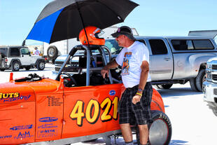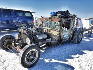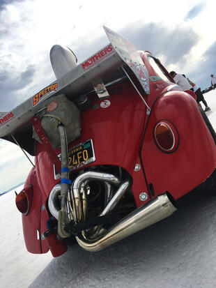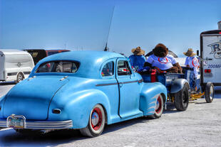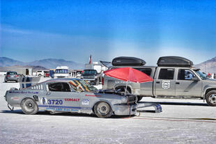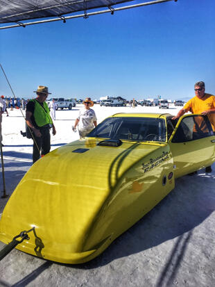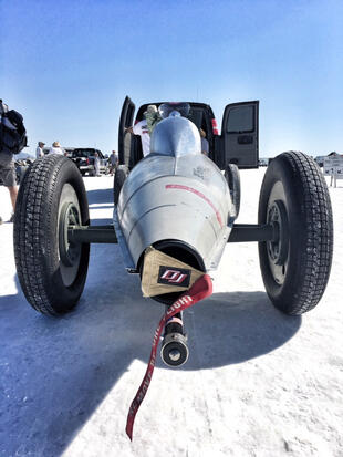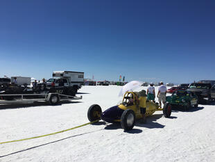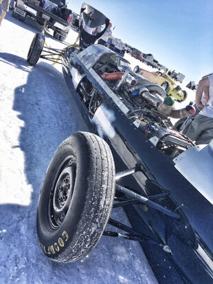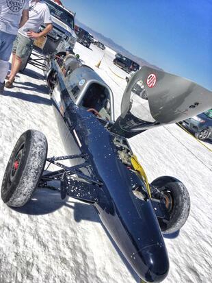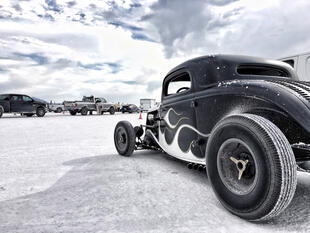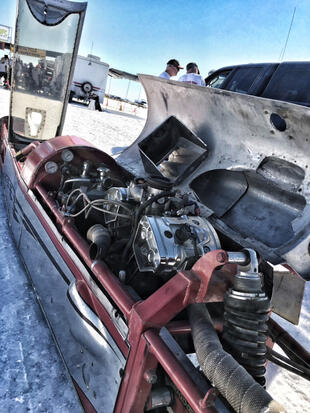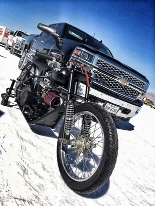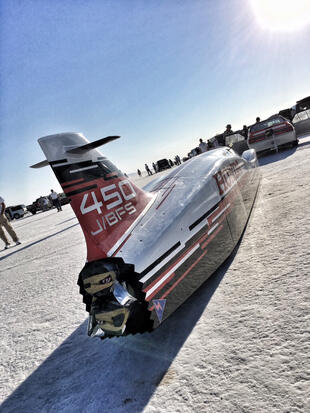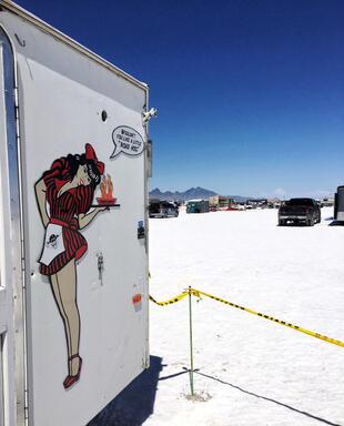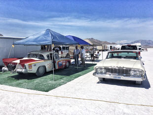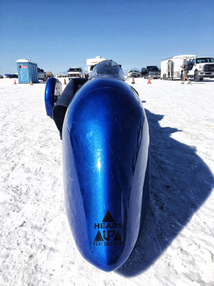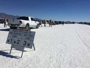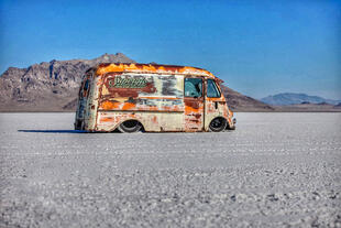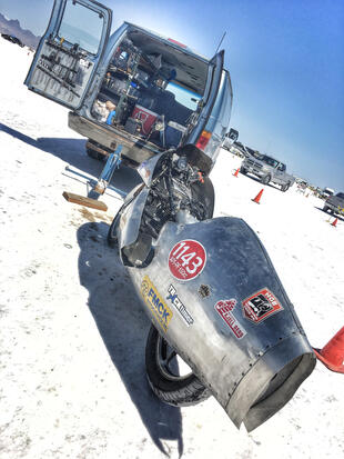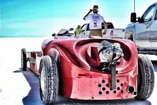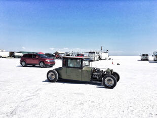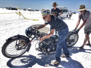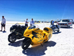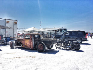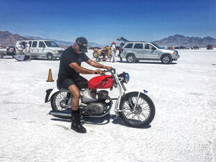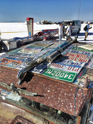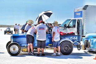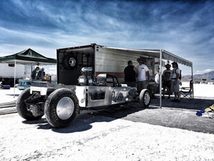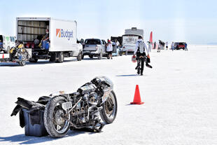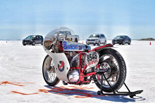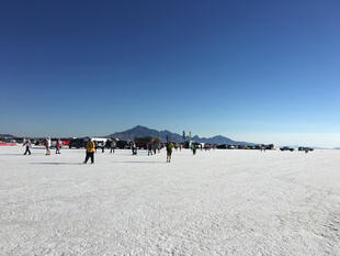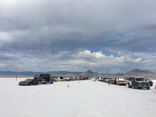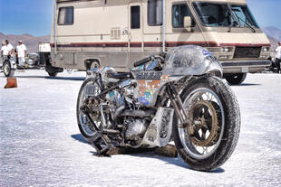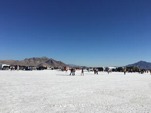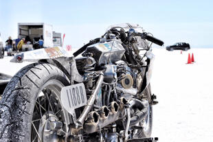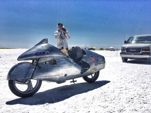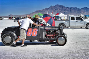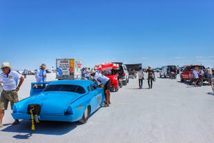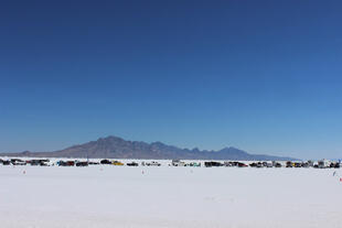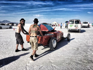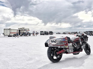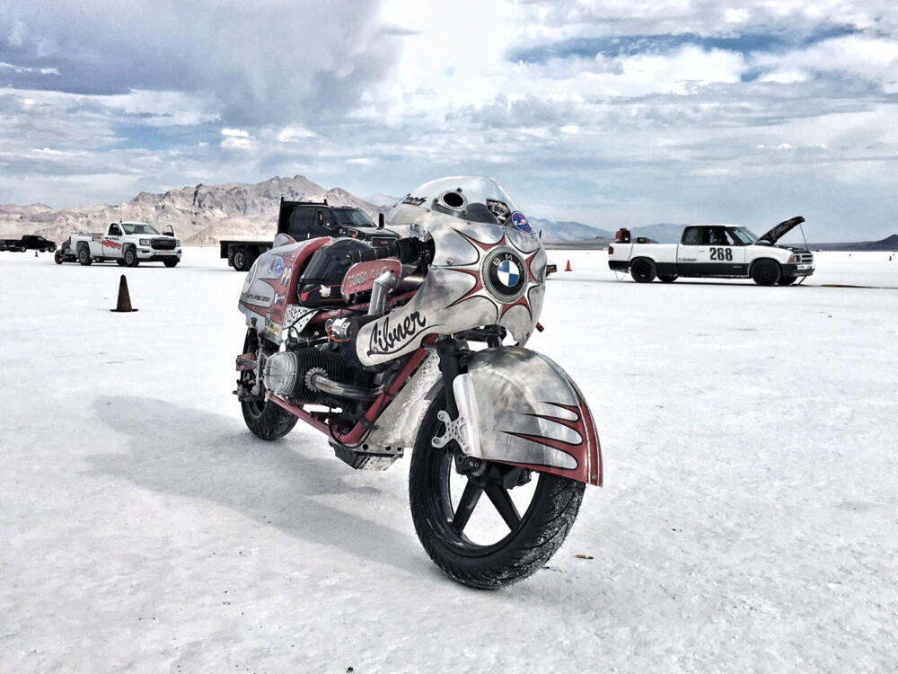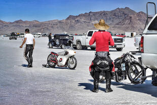 Nella settimana centrale di agosto il lago salato dello Utah è invaso da mezzi di ogni genere e forma, dall’aspetto bizzarro e dai colori sgargianti, che risaltano ancora di più grazie avvolti nel bianco più assoluto. Moto, auto, streamliner e hot rod, un autentico crogiuolo, dove i visitatori possono ammirarli toccandoli con mano. Linee futuristiche contrapposte a curve classiche, carrozzerie luccicanti in contrasto con carene arrugginite, team di professionisti a fianco di entusiasti amatori. Tutto questo contribuisce alla magia di Bonneville, dove l’infinito è puntellato di personaggi pittoreschi con i loro coloratissimi mezzi a due e quattro ruote, e il silenzio è interrotto ritmicamente dal rombo dei motori che si lanciano alla ricerca della velocità “perfetta”.