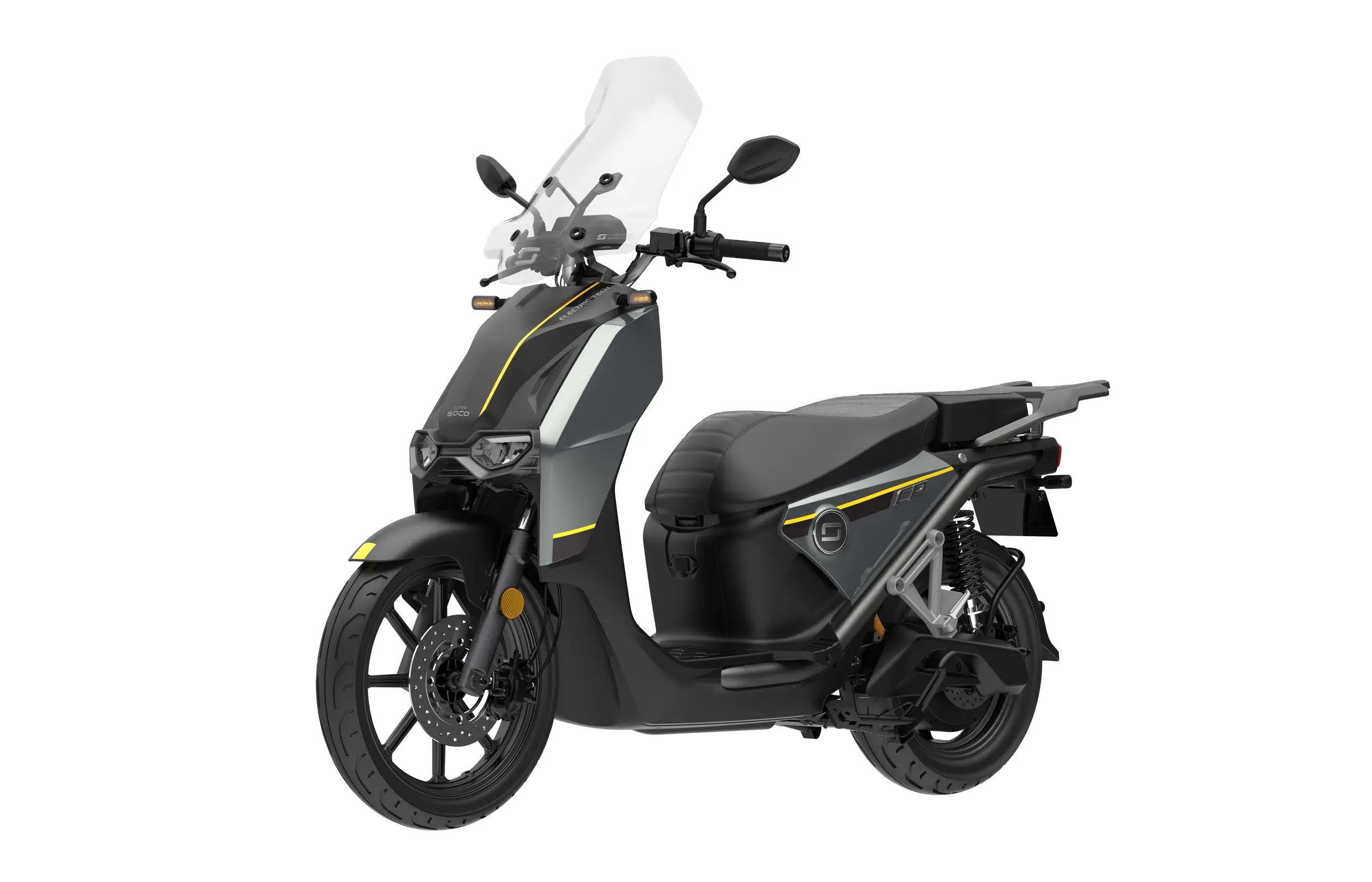 Prestazioni e autonomia analoghe a quelle di un 125 cm3 ma con tutti i vantaggi di silenziosità, ecologia e… immunità dai limiti alla circolazione che vengono dall’essere uno scooter a propulsione elettrica. Il CPx è la novità più importante della gamma Super Soco ed apre un capitolo nuovo, concetto sottolineato da una silhouette che pur essendo innovativa conserva un aspetto amichevole, familiare.