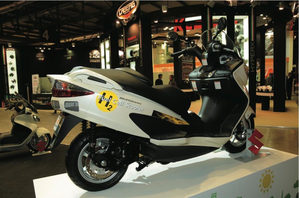 Il prototipo del Burgman Fuel Cell "gira" per le fiere di tutto il mondo da un paio di anni, ora avrebbe anche le carte in regola per diventare un modello di serie: da poco ha ottenuto l'omologazione Europea che gli consentirebbe di essere immatricolato in tutti i paesi dell'Unione. I prototipi stanno macinando chilometri in Inghilterra e in Giappone, ma la commercializzazione non è prevista a breve. Al momento infatti non esistono le infrastrutture per fare il pieno di idrogeno che è il "cuore" delle Fuel Cell. Le celle a combustibile infatti sono un sistema alternativo alle batterie per produrre l'energia elettrica per alimentare i motori. Generano corrente grazie a una reazione chimica tra idrogeno e ossigeno e come gas di scarico producono solo vapore acqueo. L'idrogeno è stivato in un serbatoio montato all'interno del telaio (di qui la necessità di "benzinai" riforniti d'idrogeno) mentre l'ossigeno è quello presente nell'aria.Foto e immagini