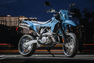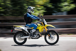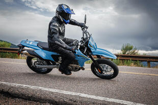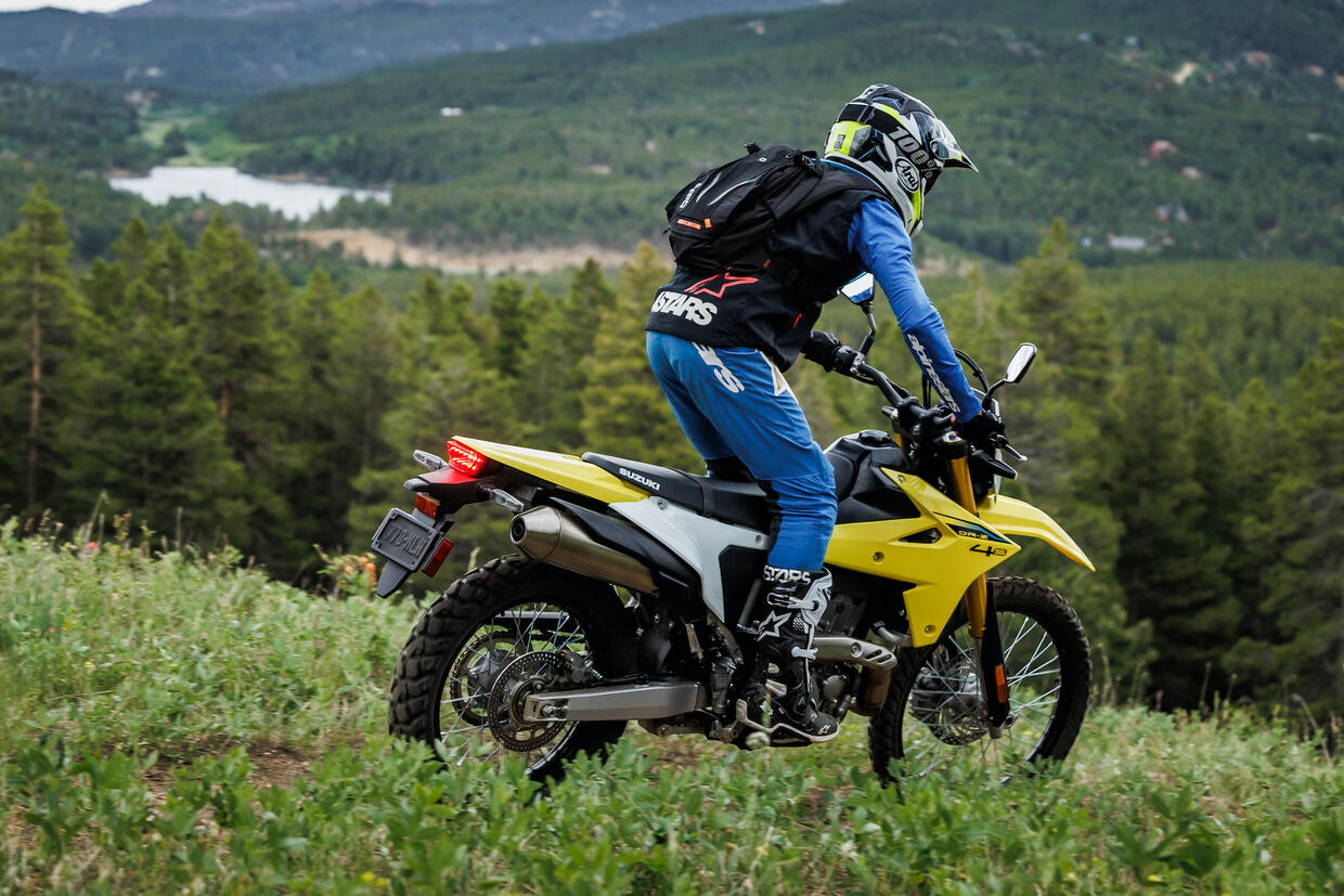 - La DR-Z4SM, invece, monta le ruote entrambe da 17”, calzate da pneumatici Dunlop SPORTMAX Q5A e hanno escursioni rispettivamente di 260 e 277 mm. L’altezza della sella è di 890 mm, con una luce a terra di 260 mm.