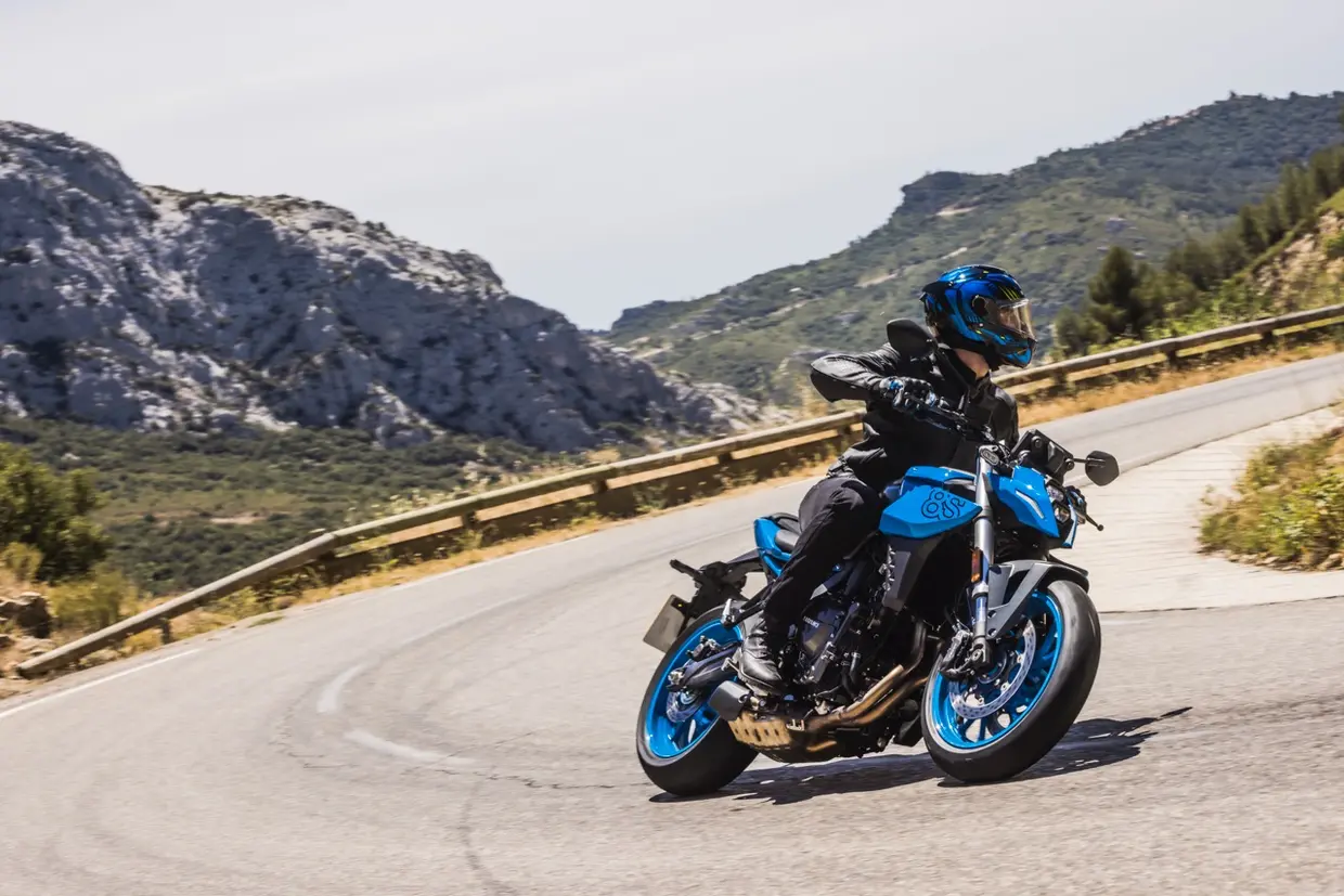 La frenata è assicurata all’anteriore da due dischi flottanti di 310 mm di diametro con pinze Nissin a fissaggio radiale, e al posteriore da un disco di 240 mm con pinza flottante a singolo pistoncino. Le ruote da 17” sono in lega di alluminio con pneumatici Dunlop RoadSport radiali nelle misure 120/70 ZR17 davanti e 180/55 ZR17 dietro.