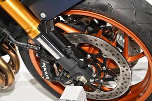 Non sono invece stati toccati il telaio a doppia trave e il forcellone in alluminio, ereditati direttamente dalla GSX-R1000 2016, e nemmeno le sospensioni: forcella KYB a steli rovesciati di 43 mm e ammortizzatore entrambi pluri regolabili. All’avantreno ci sono due dischi freno da 310 mm con le stesse pinze Brembo radiali monoblocco montate sulla GSX-R1000 attuale, e naturalmente l’ABS. Sui cerchi in alluminio a sei raggi della Enkel sono montati pneumatici Dunlop Roadsport 120/70ZR17 e 190/50ZR17. Il montaggio del manubrio, ora, è su gommini, per ridurre le vibrazioni trasmesse al conducente.