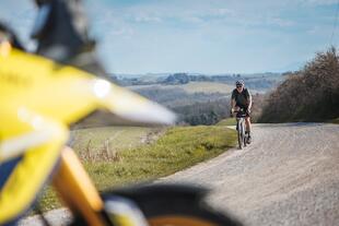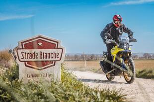 In questa occasione, grazie a Suzuki, abbiamo avuto l’opportunità di vivere l’evento in prima persona, anticipando gli atleti in sella alle V-Strom 800 DE e percorrendo il circuito di gara. Con circa un’ora di vantaggio sulla competizione, siamo partiti dalla Fortezza Medicea di Siena per affrontare il percorso ad anello riservato alle atlete femminili: 134 km di strade collinari, lunghi tratti sterrati e panorami mozzafiato.