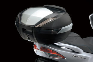 Suzuki rilancia anche il Burgman 400 in versione Comfort, dedicato a chi cerca ancora più protezione e spazio. Rispetto alla versione base, questa variante aggiunge parabrezza maggiorato, paramani, bauletto da 47 litri con piastra di montaggio e schienalino passeggero. Il prezzo è di 7.490 euro.