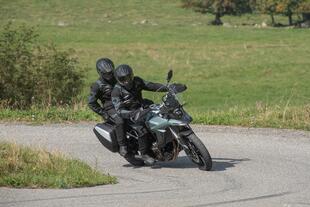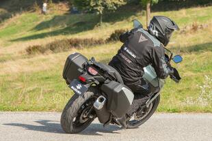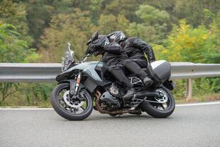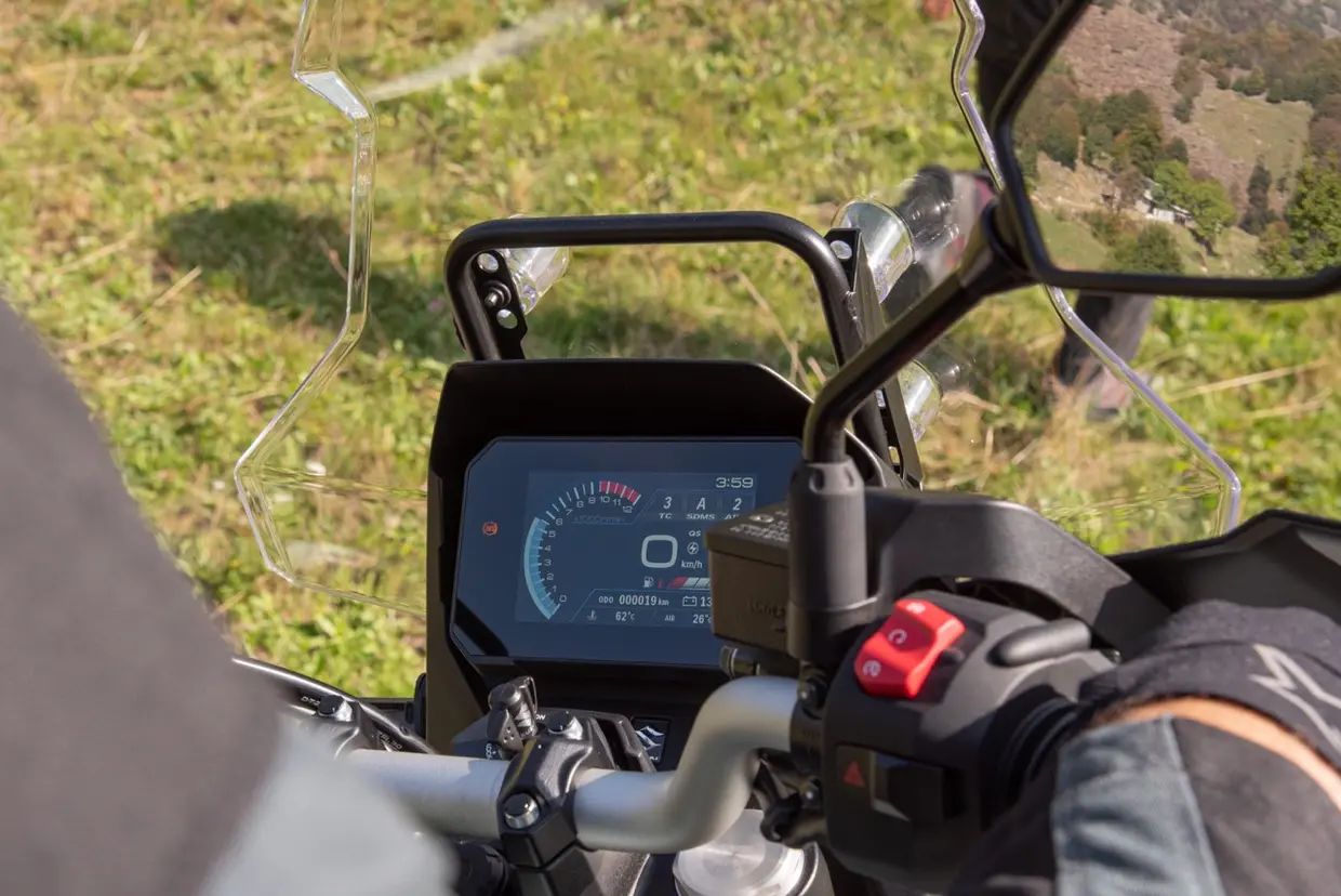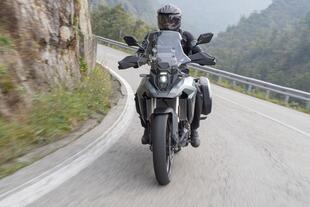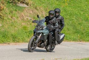 È cambiato anche l’assetto in sella, sia perché l’altezza della seduta è scesa da 855 mm a 825 mm, sia per il diverso rapporto del triangolo manubrio-sella-pedane, ottimizzato nell’ottica della guida stradale. Il manubrio in alluminio a sezione variabile ha un’impugnatura stretta e confortevole, e contribuisce al comfort anche il nuovo parabrezza alto sviluppato in galleria del vento per deviare i flussi d’aria dal busto di conducente. Per il passeggero pedane rivestite in gomma e maniglie integrate nel portapacchi di serie. Ci sono comandi al manubrio facili da azionare anche indossando guanti pesanti, e la strumentazione è inserita in un display multifunzione TFT LCD a colori da 5” con modalità di visualizzazione diurna e notturna.