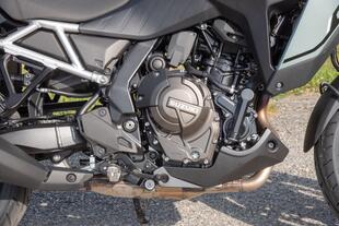 Il motore resta il collaudato bicilindrico parallelo di 776 cm³ con manovellismo a 270° e sistema di bilanciamento brevettato Suzuki Cross Balancer. Vengono dichiarate una potenza di 84,3 CV/62 kW e una coppia di 78 Nm, insieme a un consumo medio di 22,7 km/ litro. Per quanto riguarda la trasmissione ci sono la frizione assistita anti-saltellamento e il cambio a sei marce.
