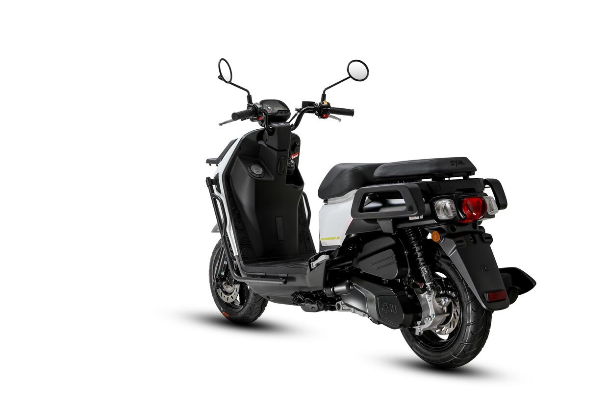 La linea trasmette questa idea innovativa, e lo si capisce bene scendendo nel dettaglio: il sedile posteriore pieghevole permette di convertire rapidamente lo scooter dal trasporto di passeggeri a quello di merci, senza bisogno di attrezzi. La piattaforma posteriore è estensibile, cioè si può allungare del 60% ampliando notevolmente la capacità di trasporto, per pesi fino a 40 kg. Le protezioni paracolpi disposte diffusamente comprendono 12 punti di fissaggio per accessori, permettendo così di personalizzare il veicolo in base alle proprie esigenze senza stravolgerne la silhouette. C’è una pedana piatta e amplissima, 410 mm che offrono spazio per i piedi e garantiscono notevoli capacità di carico, ed è stato previsto un freno di stazionamento integrato che consente il parcheggio anche su strade inclinate. Il caratteristico faro LED circolare di classe D integra abbagliante, anabbagliante e luce diurna, la strumentazione è contenuta in un cruscotto LCD, ci sono una luce di emergenza per segnalazioni immediate e la porta Quick Charge 3.0 per ricaricare i dispositivi elettronici.
