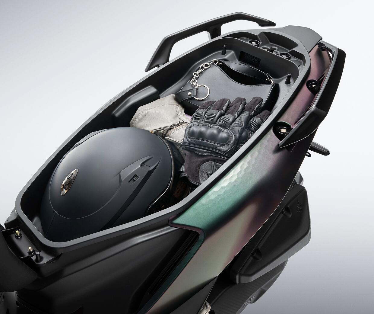 Il sottosella è lungo ma non molto profondo, ci sta un casco jet e avanza spazio per altri piccoli oggetti