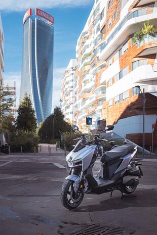 Colpiscono soprattutto le forme, ma anche le soluzioni tecniche; il telaio in tubi è basso e ha permesso di avere una pedana piatta sulla quale è agevole trasportare una borsa, il motore è brillante e la dotazione tecnica completa