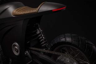 Nulla di particolarmente "nuovo" invece per quanto riguarda il resto della componentistica, fatta dall'ormai irrinunciabile sella piatta in pelle abbinata al faro tondo retrò ma "modernizzato" a LED. La coda ha una particolare forma piatta illuminata da una sottile striscia di LED e sostenuta da un grosso monoammortizzatore. Elegante il grigio satinato scelto per la verniciatura in contrasto agli elementi neri e marrone/oro di manubrio, manopole, forcella cerchi, sella e particolari vari. Anch'essa stampata in 3D, la carenatura nasconde la grossa batteria, della quale, come del motore, ci viene per il momento detto pochissimo. Un accenno all'autonomia promette però fino a 121 km di media (145 su tratti autostradali e 80 in città).