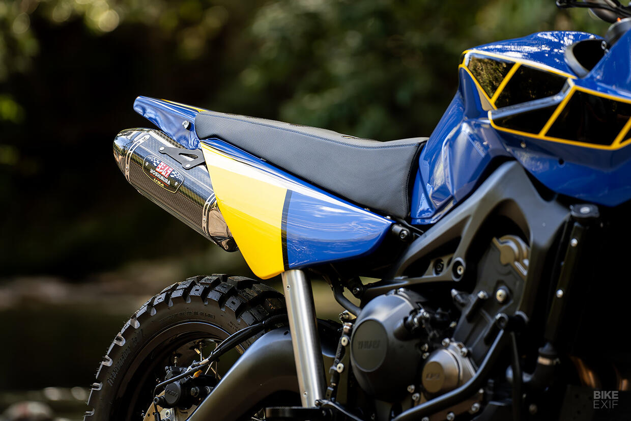 La zona di guida è stato riallestita con manubrio largo, leve aftermarket, specchi PBM e un supporto per smartphone con ricarica wireless. Le pedane sono state riposizionate per favorire la guida in piedi e dotate di inserti antiscivolo stile motocross. Non mancano un nuovo parafango anteriore in alluminio, protezioni per la forcella, un parafango posteriore con fanale integrato e frecce PBM. La sella è stata rifinita in vinile grippante da Timeless Auto Trim. A completare la trasformazione: protezioni carter, paracoppa in alluminio e telai per borse laterali removibili. Il tocco finale è arrivato dalla verniciatura: dopo aver considerato grafiche da Dakar o ispirate al cross, la scelta è ricaduta su una livrea blu e gialla con lo storico “speedblock”, realizzata da Pop Bang Classics. Il risultato, secondo lo stesso team, ha superato le aspettative, rendendo le superfici metalliche simili a plastiche da moto di serie. E a quanto pare, anche alla guida la moto non delude: potente, immediata e divertente. E insomma, Yamaha, se ci sei...