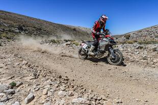 Equipaggiata con accessori Ducati Performance, la Multistrada 1260 Enduro in foto ha regalato al pilota Andrea Rossi - tester e collaboratore di Ducati - i primo posto nella categorie bicilindriche al Transanatolia Rally 2020, accompagnandolo per ben 2.850 km lungo piste sterrate e sabbiose