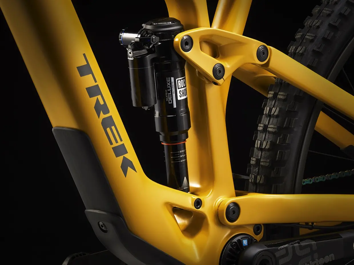 Assieme al produttore di robotica tedesco TQ, Trek ha sviluppato Fuel Exe affinché funzionasse con il nuovo motore HPR50. Questa unità motrice rinuncia a cinghie e ingranaggi rumorosi e soggetti all’usura, a favore di un sistema completamente rivisto più piccolo, leggero e silenzioso rispetto ai tradizionali motori per e-bike. L’intero sistema si riduce a soli 3.900 grammi. Ha una coppia di 50 Nm ed è alimentato da una batteria da 360 Wh. La batteria è celata nel tubo obliquo e può essere facilmente rimossa. Per coloro che desiderano coprire distanze maggiori, è possibile inserire un Range Extender da 160 watt/ora all’interno del portaborraccia per aumentare l’autonomia del 40%.