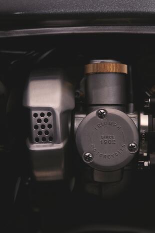 La Thruxton incarna la sportività inglese, che si può cogliere nei piccoli dettagli come il tappo del serbatoio flip-top in stile vintage, la sella monoposto e gli specchietti retrovisori sistemati all'estremità dei semimanubri. Per il 2016 la "cattiva" della gamma Bonnevile si presenta però con parecchie novità, a partire dalla posizione di guida, sempre sportiva, ma un po' meno sdraiata sul serbatoio rispetto al modello precedente, ma la novità più succosa è nel motore. Lo schema è sempre quello del bicilindrico parallelo frontemarcia, ma la cilindrata sale a 1.200 cm3, la distribuzione è a 4 valvole per cilindro e il raffreddamento a liquido, e la coppia massima è di 112 Nm a 4.950 giri, il 62% in più rispetto al modello precedente. In questa versione il propulsore è stato rivisto non solo per sprigionare più potenza e coppia, ma anche per avere più spinta nella zona medio-alta del contagiri, quella più usata nella guida sportiva. Il propulsore poi è degnamente affiancato da un cambio a 6 rapporti dotato di frizione antisaltellamento.