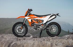 Le sospensioni sono WP l’ultimo grido della moda: forcella con steli di 48 mm Ø completamente regolabile, ammortizzatore regolabile in tutte le funzioni e collegato al forcellone in alluminio da un sistema di leveraggi, ma il modello fuoristrada ha le XPLOR mentre quello da asfalto le APEX. Ovviamente cambiano le tarature vista la diversa destinazione d’uso, e cambiano anche le ruote: 21 “-18” a raggi per l’enduro, 17 “-17” per la stradale, in entrambi i casi a raggi. I dischi freno sono a margherita, l’anteriore di 300 mm Ø e il posteriore di 240, con pinze Brembo. Leggermente diversa, per via del diametro delle ruote, l’inclinazione di sterzo: 26,4° e 120 mm di avancorsa per la stradale, 27,7° e 110 mm di avancorsa per l’enduro, e ci sono differenze anche nel peso: 153,5 kg a secco per la prima e 152 per la seconda. Quello che non cambia è il prezzo: in entrambi i casi 12.980 € franco concessionario.