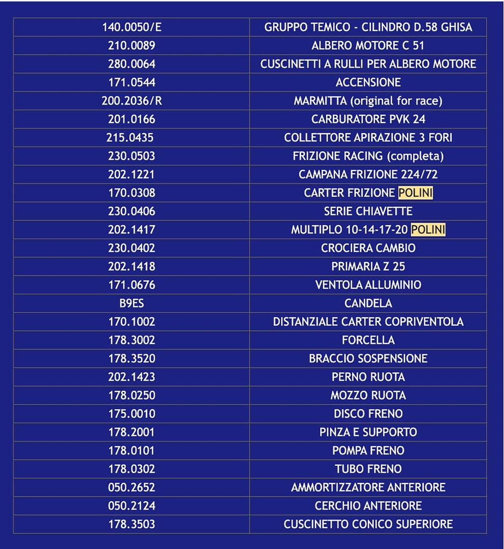 La cosa curiosa è che chiunque si può realizzare da solo una Vespa ET3 come quella della squadra ufficiale bergamasca perché lo scooter era stato preparato con gli stessi componenti che chiunque può acquistare da un rivenditore Polini. C’era il dubbio, oggi c’è anche la certezza perché è stata diffusa la lista dei componenti impiegati per preparare la Vespa vincente, tutti provenienti dal catalogo Polini e acquistabili da chiunque presso i rivenditori.