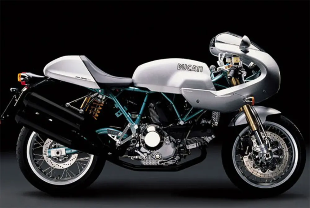 La Paul Smart 1000 LE, lo ricordiamo, è una versione limitata, prodotta da Ducati nel 2006 in soli 2.000 esemplari, parte della famiglia SportClassic ideata da Pierre Terblanche. Una moto omaggio alla vittoria della Ducati 750 SS alla 200 Miglia di Imola del 1972 (foto sotto), guidata da Paul Smart e Bruno Spaggiari. Non per nulla, la Paul Smart riprende lo stile classico della 750 SS, con telaio azzurro acquamarina, serbatoio e codino monoposto in argento, e cupolino in tinta. Il logo richiama invece i caratteri originali degli anni ’60. Sotto la scocca c’è il bicilindrico a L di 90°, raffreddato ad aria, da 992 cm³, con iniezione elettronica gestita da centralina Magneti Marelli da 92 CV a 8.000 giri e 9,3 kgm a 6.000 giri, lo stesso utilizzato nelle Ducati Monster 1000 e S2R 1000. Il telaio è il classico traliccio in acciaio ALS450, quello derivato dalla serie Supersport. La forcella Öhlins upside-down è completamente regolabile con steli da 43 mm rivestiti in TiN, mentre il monoammortizzatore posteriore è sempre Öhlins e regolabile. Il cannotto di sterzo ha un’inclinazione di 28° e il passo è di 1.435 mm. Molto particolare il forcellone bibraccio a “banana” sul lato destro, piegato per permettere il passaggio del collettore di scarico e il doppio terminale. Il sistema frenante è firmato Brembo, con doppio disco anteriore da 320 mm e singolo disco posteriore da 240 mm.