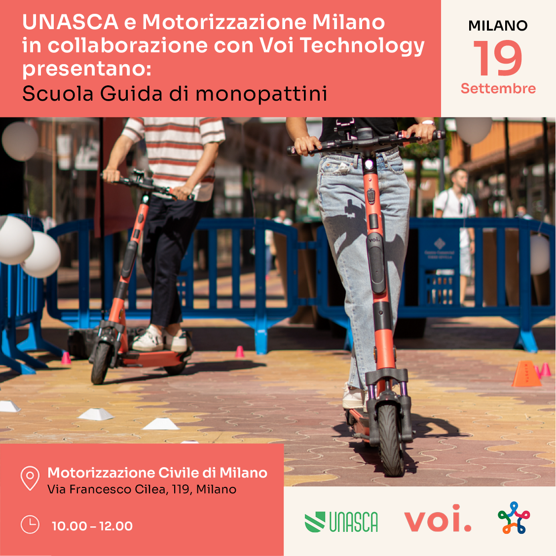 Promossa da promossa da UNASCA insieme alla Motorizzazione Civile di Milano e con il supporto tecnico della svedese Voi Technology, l’iniziativa punta a sensibilizzare gli utenti sui rischi derivanti da un utilizzo scorretto dei monopattini elettrici. L’appuntamento è per lunedì19 dalle 10 alle 12