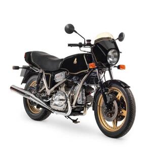 In poco tempo, ma a fronte, di nuovo, di ingenti investimenti, nacque la lussuosissima - e super esclusiva - Hesketh V1000, bicilindrica da 992 cm³ di cilindrata con distribuzione a camme in testa a 4 valvole per cilindro, (quasi) mai visto all’epoca. Il motore da 86 CV a 6.500 giri/min aveva albero motore ricavato dal pieno, i carburatori erano Dell’Orto, la forcella regolabile e i freni a disco firmati Brembo. Di più: i cerchi in lega, in acciaio anodizzato oro o nero, furono ricavati da due blocchi in lega stampati rivettati insieme, mentre il telaio era disponibile sia verniciato nero che nichelato. Le linee, classiche, eleganti ma anche massicce, erano a firma John Mockett, già autore delle Kawasaki LTD custom ed in seguito progettista delle Triumph TSX 750 e Rocket III.