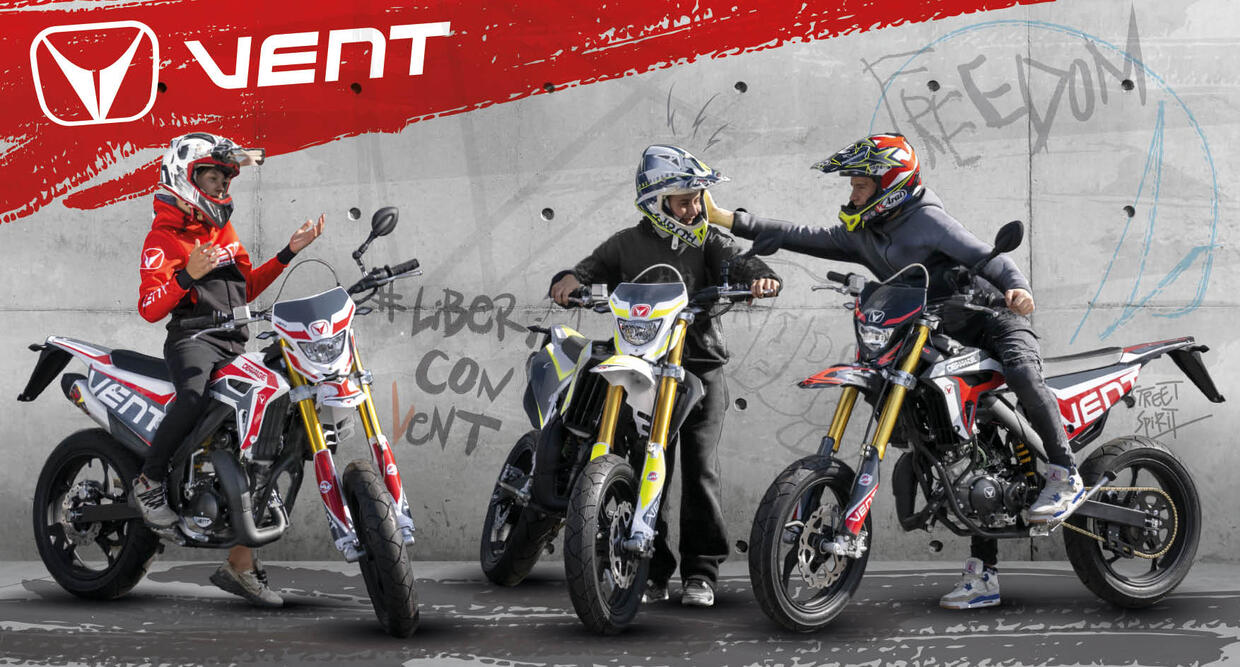 Al Salone internazionale del motociclo di Milano, Vent Moto presenta una gamma completamente rinnovata, articolata in tre linee che rappresentano il cuore della rinascita del marchio: Freedom, Play e Racing. La gamma Freedom, da 50 a 125, resta la porta d’ingresso nel mondo Vent. Pensata per i ragazzi dai 14 ai 18 anni, unisce sicurezza, qualità costruttiva e design italiano. Già in vendita, si prepara ora a evolvere con un linguaggio estetico più contemporaneo e responsabile. La novità più attesa è il nuovo 125 4T, proposto in versione Enduro e Motard, con due varianti tecniche: telaio in alluminio con motore Minarelli per chi cerca leggerezza e prestazioni, oppure telaio in acciaio con motore QJ per chi predilige robustezza e versatilità.