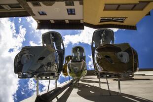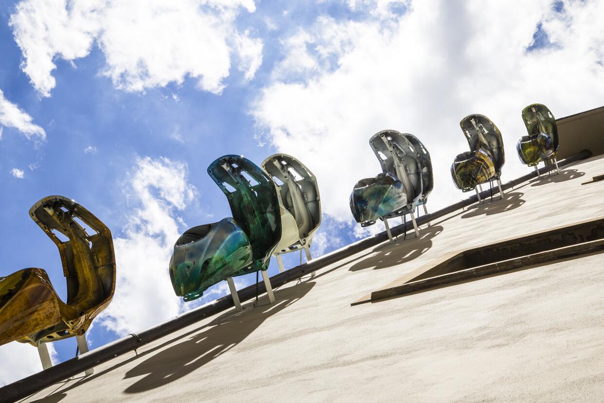 Le opere dell’artista americano e una grande installazione firmata da Simone D’Auria, con Vespa protagonista, si confrontano al Gallery Hotel Art di Firenze, sulla cui facciata sono ancorate 12 scocche decorate con immagini naturalistiche