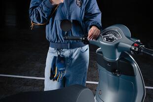 Altri dettagli caratterizzano questa particolare versione della Vespa: la sella con doppio rivestimento è circondata da una doppia cucitura a contrasto e da rivetti in ottone lucido che richiamano fortemente la tradizione. Per la Vespa GT V Officina 8 è di serie anche la cover rigida in tinta carrozzeria che si richiama alle carenature delle Vespa da competizione accentuando l’aspetto sportivo. Numerosi anche i dettagli in nero opaco, così come sono in nero opaco gli specchi retrovisori “bar end”.
