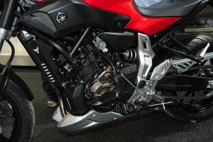 La MT-07 monta il nuovo motore bicilindrico da 689 cm3, derivato dal tre cilindri della MT-09, per questa nuova unità Yamaha dichiara una potenza di 74,8 CV e, soprattutto, tanta spinta ai bassi e medi regimi sempre ben gestibile, per questo la fasatura del motore è “irregolare” a 270°, come su TDM 900 e Super Ténéré, una soluzione che permette di esaltare, secondo Yamaha, le caratteristiche dei bicilindrici frontamercia. Per limitare le vibrazioni il motore è dotato di un albero di bilanciamento e di supporti in gomma interposti tra motore e telaio. Per la MT-07 la casa giapponese garantisce consumi particolarmente contenuti, grazie a un’attenta progettazione mirata a ridurre le perdite di potenza per attrito, pistoni forgiati e camere di combustione “a lente”. Da record per la categoria il peso: 164 kg a secco, 179 kg in ordine di marcia, cioè con tutti i liquidi e la benzina. Il telaio è un monotrave in tubi di acciaio a spessore variabile mentre il motore contribuisce alla rigidità dell’insieme. Anche il forcellone è in acciaio con mono orizzontale e regolabile, la forcella invece non è regolabile e ha steli da 41 mm e un’escursione di 130 mm. L’impianto frenante vede al lavoro una coppia di dischi a margherita con pinze a quattro pistoncini. La strumentazione è completamente digitale, la posizione di guida eretta come sulla MT-09 e la sella è a 79,5 cm di altezza. Non ancora comunicato il prezzo ma in Yamaha confermano che la MT-07, in arrivo a febbraio 2014, avrà un prezzo di poco inferiore ai 6.000 euro...