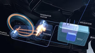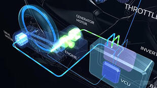 Se il livello di carica della batteria scende al di sotto di un determinato limite oppure viene richiesta una spinta maggiore, il sistema di controllo attiva il motore a combustione che trascina il motore elettrico direttamente flangiato, impiegandolo come generatore per caricare la batteria. Se viene richiesta una potenza maggiore, alla spinta del motore termico si aggiunge quella del motore elettrico sulla ruota, ed è possibile anche combinare l’azione di tutti e tre i propulsori quando serve ancora di più, ad esempio per un sorpasso.