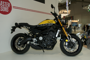 Dopo la XSR700, presentata poche settimane fa, al salone di Milano ha debuttato la XSR 900, evoluzione “fasters sons” della MT-09, con cui condivide ciclistica, telaio in alluminio pressofuso, forcella a steli rovesciati e motore, l’apprezzato tre cilindri da 847 cm3 Crossplane in grado di erogare 115 CV. Il controllo di trazione e l’impianto frenante con ABS arrivano invece dalla Tracer: in particolare, il TCS (Traction Control System) è regolabile su 3 diversi setting, a seconda delle condizioni stradali, e può essere anche disinserito. Presente anche la frizione antisaltellamento che, riducendo il freno motore, impedisce alla moto di bloccare la ruota posteriore e scomporre l'assetto nelle scalate violente. È tutta nuova invece l’estetica che secondo la Casa è ispirata alla “special” realizzata dal customizer americano Roland Sands, verniciata nel classico giallo/nero delle Yamaha da corsa portate in gara da Kenny Roberts negli anni 70, ma in realtà il serbatoio con le cover in alluminio, i fari tondi, la sella con impunture a vista e molti altri dettagli sono praticamente uguali a quelli della XSR 700. Nuovo e bello invece lo scarico nero opaco (già Euro 4) che crea un elegante contrasta con il fondello in alluminio del silenziatore. La nuova XSR900 sarà disponibile dal febbraio 2016 nelle colorazioni Matt Grey e Rock Slate a 9.590 euro, e in colorazione 60th Anniversary a 9.890 euro.