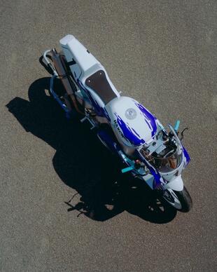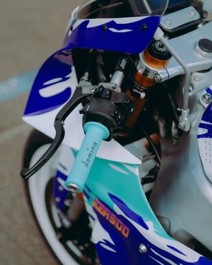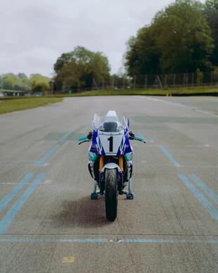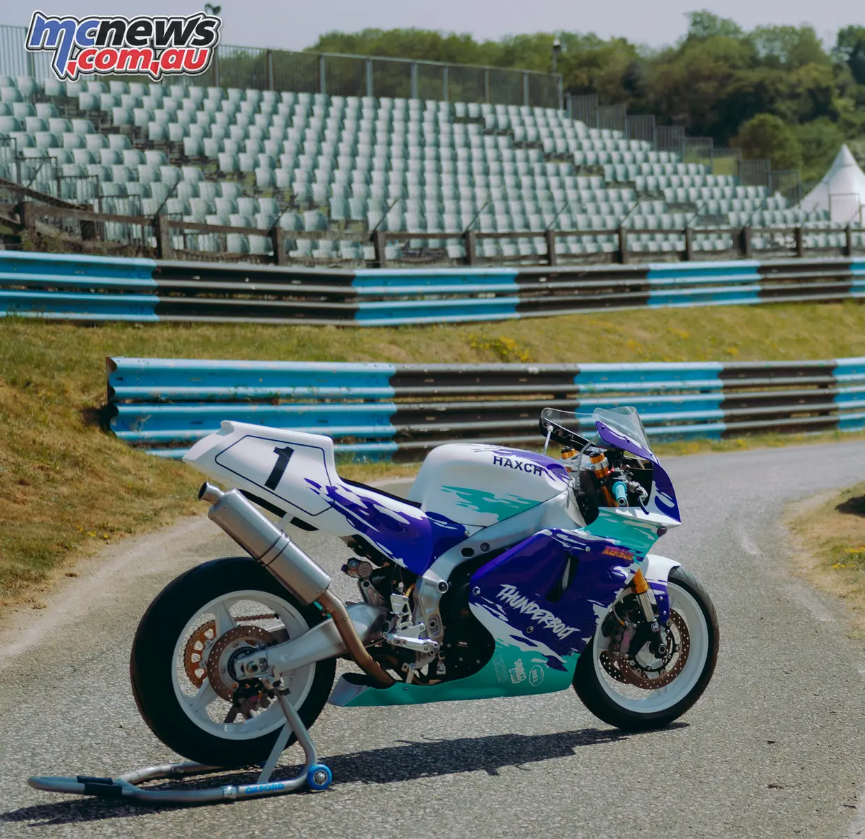 In pieno stile anni Novanta, la colorazione viola, bianca e turchese porta la firma di Image Design Custom. “Ho disegnato tutto in Photoshop e poi ci siamo messi a tracciare le linee direttamente sulla moto”, ha detto Bell, mentre il nome - Thunderbolt - è stato scelto per richiamare la tradizione Yamaha degli anni Novanta: Thundercat e Thunderace.