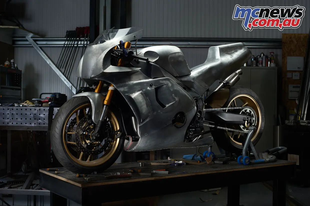 La base è una Yamaha XSR900. “Il telaio è molto stretto sotto la sella, ricorda quello di una 250GP”, racconta Bell. Partendo da qui, ha creato una carrozzeria in alluminio interamente realizzata con l’English Wheel, strumento “storico” della lavorazione dei metalli. “Con l’alluminio - spiega Bell - hai subito il pezzo finito, senza stampi né resine. C’è più rispetto quando una moto è fatta in metallo e non in vetroresina o carbonio”. Ma c’è molto di più: il progetto sfrutta il telaio e il forcellone originali, con un telaietto posteriore custom ispirato alla YZF750 di Colin Edwards.