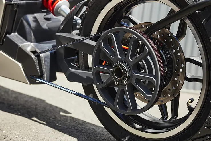 Non mancano le soluzioni tecniche motociclistiche, come la trasmissione con cinghia e la pinza freno anteriore ad attacco radialePoca autonomia