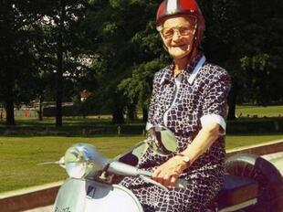 Gli auguri di Nonna Luisa, in Vespa a 106 anni