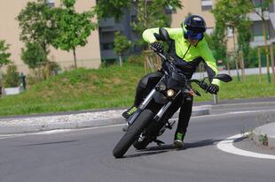 Anche se la potenza è quella “legale” delle 125, non c’è moto a benzina di questa cilindrata che possa starle dietro in accelerazione e ripresa. Già in modalità Eco la FXS spinge forte e in pochi secondi arriva a 130 km/h indicati. Se poi si inserisce la mappatura Sport, attenzione alla ruota davanti: si alza spontaneamente quando si spalanca l’acceleratore! Il motore elettrico è così, dà tutto subito, bisogna farci la mano per non correre rischi. Su strada comunque la FXS si dimostra reattiva ma sicura e pronta a rispondere ai comandi del pilota: la posizione di guida comoda, il manubrio largo e la ciclistica a punto vengono in aiuto a chi ha poca esperienza, come pure i freni ben tarati e l’ABS.