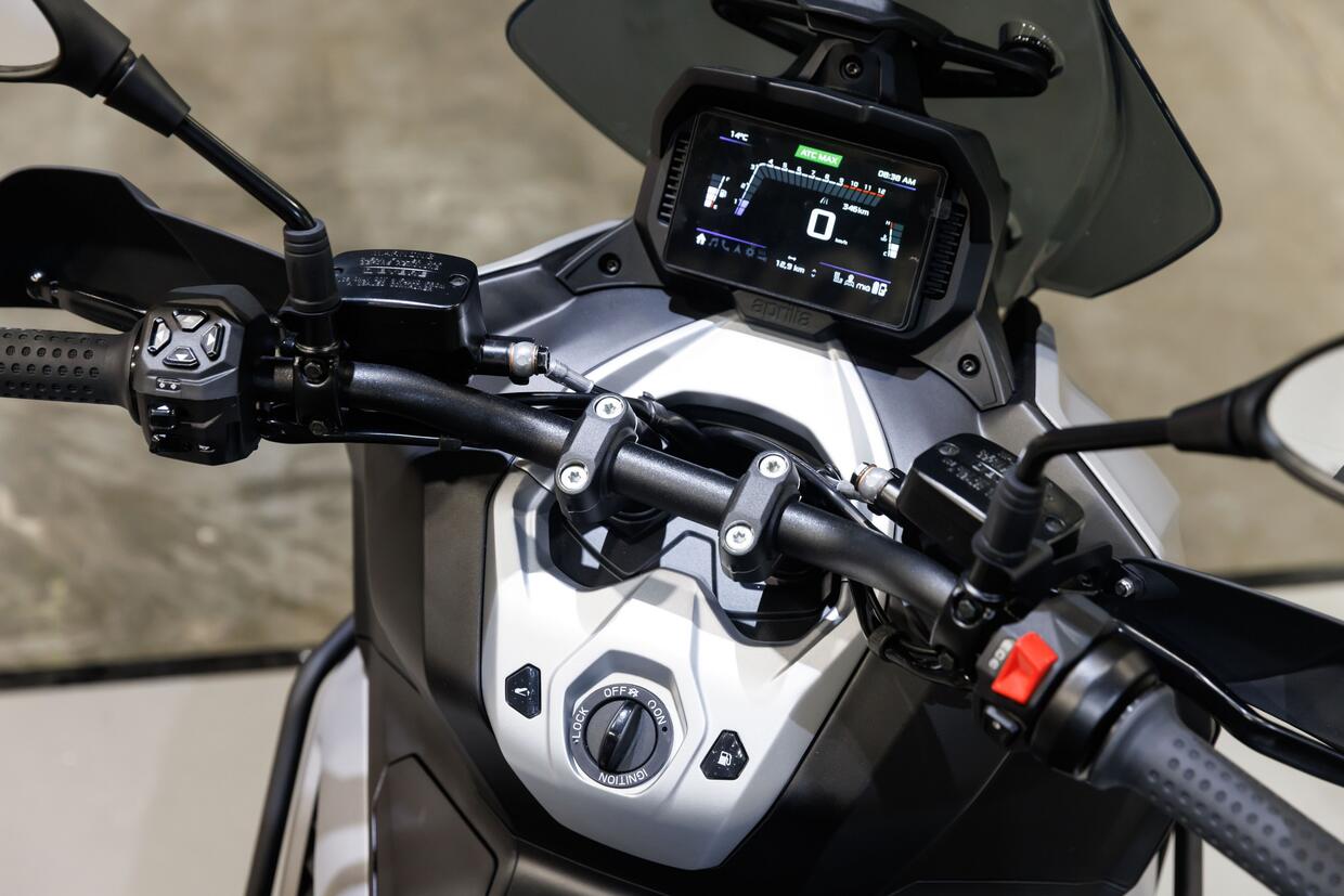 Il display è un TFT a colori di 5” ben luminoso e con grafiche di lettura immediata. Come optional offre la connessione allo smartphone attraverso l’app Aprilia MIA. Il sistema include sia la gestione di telefonate e musica tramite i comandi al manubrio, sia la funzione di navigazione, con la quale è possibile visualizzare le indicazioni a pittogrammi direttamente sulla strumentazione.