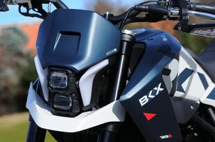 Con la BKX, Benelli sceglie di alzare l'asticella proponendo ai propri clienti due ottavo di litro (enduro o motard) con soluzioni tecniche e prestazioni superiori. Difatti, rispetto alla nuda BN, le BKX (qui la prova della enduro) montano una versione rivista e aggiornata del monocilindrico monoalbero di 125 cm³ con raffreddamento a liquido e una potenza massima dichiarata di 15 CV a 9.500 giri/min e 12 Nm di coppia. Motore racchiuso all'interno di un nuovo telaio a traliccio in acciaio sostenuto da sospensioni pluriregolabili con 150 mm di escursione. La forcella ha steli rovesciati di 41 mm ed è completamente regolabile, mentre il monoammortizzatore lo è nel precarico e in estensione ed è collegato al forcellone tramite leveraggi. L’impianto frenate vede schierati due dischi: 280 mm l’anteriore con pinza a quattro pistoncini e 240 mm il posteriore, con pinza a due pistoncini. L’elettronica si limita all’ABS, presente solo sulla ruota davanti.