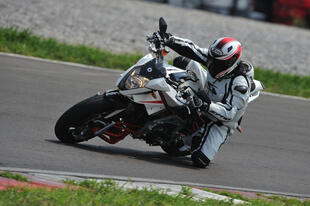 La Tesi 3D Naked accoglie bene il pilota: la sua porzione di sella è spaziosa, la seduta bassa e il manubrio è piuttosto alto, quindi il peso non grava sui polsi. Sta peggio il passeggero: questa è una biposto solo per brevi gite. Il bicilindrico Ducati ha una bella spinta ai bassi ma i suoi “soli” 98 CV non impensieriscono mai il pilota, soprattutto in pista dove si apprezza invece a fondo l’efficacia della ciclistica. In inserimento di curva è rapidissima, rigorosa nel mantenere la traiettoria e nonostante la mancanza di “aiuti” elettronici, in uscita si può aprire il gas senza remore: la Tesi 3D resta sempre stabile, con minime reazioni del posteriore. Bene anche la frenata: il peso “piuma” della naked emiliana e un impianto frenante potente ma sempre modulabile non fanno sentire la mancanza dell’ABS. Morbido ma non sempre preciso il cambio.