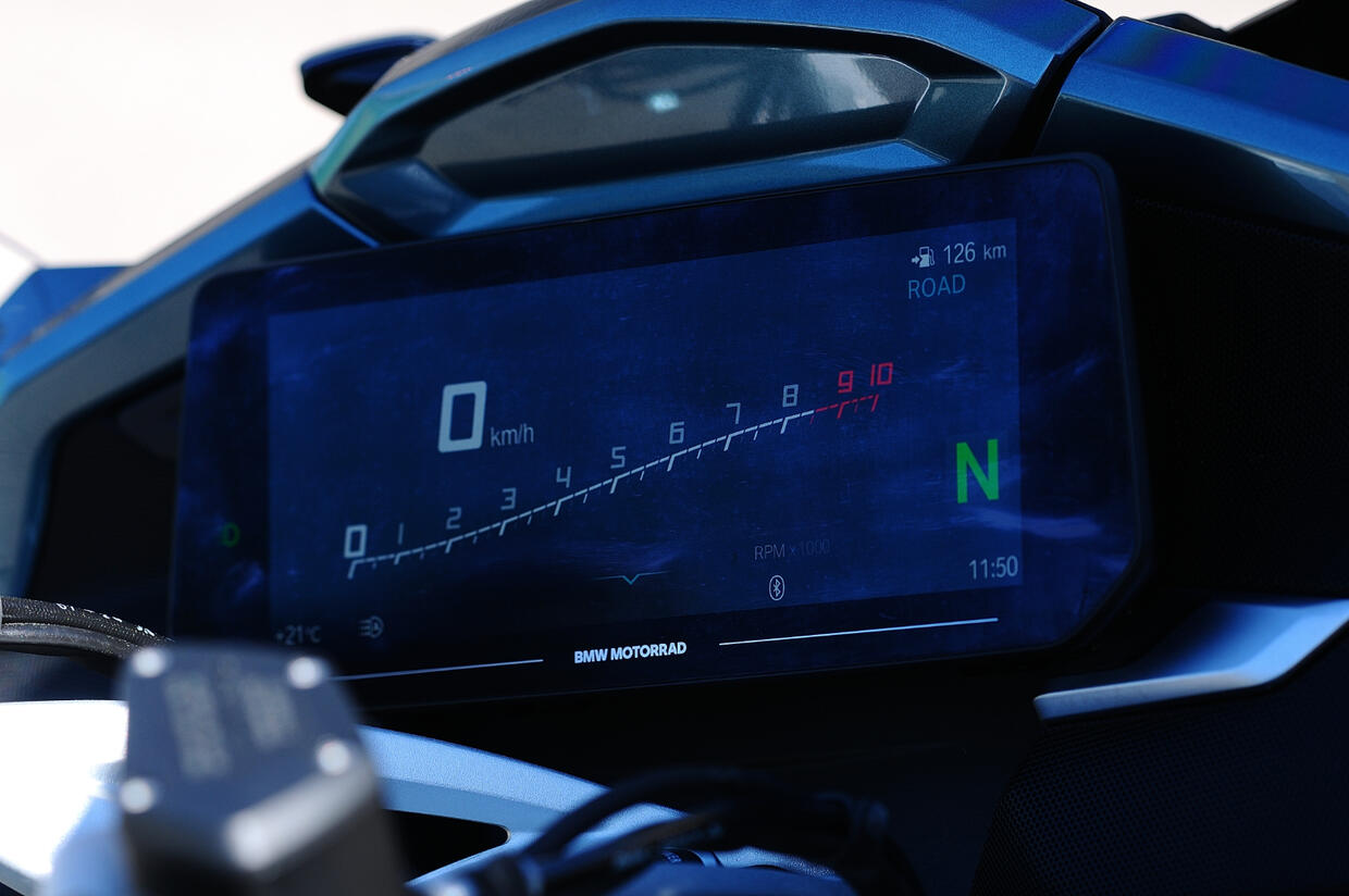 Il display TFT da 10,25” offre un’ottima leggibilità anche in pieno sole. Oltre alla connettività bluetooth, ha anche il navigatore, di serie con cartine incluse