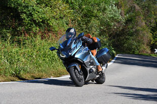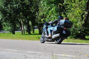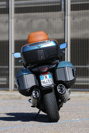 La K1600 GTL è grossa, larga e lunga: montarle in sella quasi intimorisce chi non è un gigante. Ma superata la paura, gestire questa “motona” non è un problema. Certo, nelle manovre da fermo il peso si fa sentire, ma la retromarcia elettrica di serie dà una bella mano e la sella del pilota non è troppo alta da terra (anzi, se si supera il metro e 80, le pedane risultano un po’ troppo vicine e costringono le ginocchia a stare molto piegate). In movimento, l’ottima distribuzione dei pesi rende tutto più facile. In città ci si muove con discreta agilità, in viaggio la GTL è puro godimento: stabile, comoda e protettiva come un’auto. Lo spazio a bordo è esagerato, così come il comfort. Il motore ha un’erogazione fluida e possente, spinge forte senza essere mai sotto sforzo. Tra le curve la guida è rotonda, intuitiva e precisa, basta evitare le manovre brusche. La frenata è ottima per potenza e dosabilità.