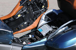 La K1600 GTL monta un raffinatissimo sei cilindri in linea inclinato in avanti, che tiene basso il baricentro e la rende facile da guidare quasi come uno scooter. Come prestazioni, anche in versione Euro 5+ il sei cilindri conferma sia i 160 CV di potenza sia i 180 Nm di coppia massima.