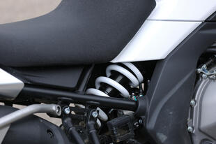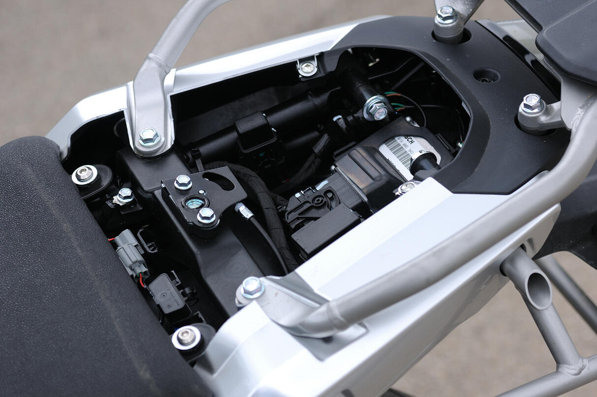 Sotto la sella del passeggero c’è questo piccolo vano che può ospitare i documenti, gli attrezzi di bordo e un (piccolo) bloccadisco, ma non la tuta antipioggia