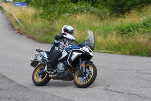 La sella è comoda, spaziosa e accogliente per pilota e passeggero, ma le pedane “centrate” e piuttosto alte possono risultare scomode per i piloti sopra il metro e 80. Il parabrezza è ampio ma molto avanti: quando la velocità aumenta si creano fastidiosi vortici davanti al pilota. Il bicilindrico è abbastanza pronto a prendere i giri (ha solo una leggera incertezza all’apertura del gas), grazie ai rapporti del cambio ravvicinati: ai medi e agli alti regimi sfodera una discreta grinta e qualche vibrazione, avvertibile soprattutto sulle pedane. Nonostante il peso, la 700MT ADV tra le curve è piacevolmente efficace, soprattutto su quelle da raccordare, mostrando ottime doti di stabilità, un avantreno preciso e piuttosto svelto, ma anche un buon bilanciamento dei pesi. Il cambio è preciso ma un po’ “ruvido” sia in inserimento sia in scalata. Anche il freno anteriore va azionato con decisione per rendere al meglio; bene invece il posteriore.