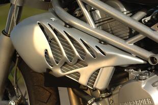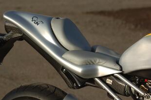 Il fatto che la Vun venga praticamente assemblata a mano, un esemplare a settimana, la dice lunga sulla cura costruttiva e l’esclusività di questa moto nata dalla passione di tre soci-amici (Cabassi, Crepaldi e Sarti) e costruita nell’azienda di Settimo Milanese da Roberto Pattoni. Prodotta in tre versioni (base, depotenziata a 34 CV e racing, con 68 CV) la Vun viene costruita in poche decine di esemplari l’anno e solo su specifiche del cliente, sia esteticamente sia meccanicamente. E’ spinta (in configurazione base) da un monocilindrico Rotax di 652 cm3 da 54 CV alla ruota, una potenza a prima vista bassa, ma capace di fare “volare” una moto di soli 135 kg (a secco) e con una ciclistica veramente a punto come questa, agilissima e reattiva. La carrozzeria è ridotta al minimo, mentre il telaio è una struttura mista con travi a traliccio in tubi di acciaio (saldati a mano) e piastre laterali in lega leggera ricavate dal pieno.